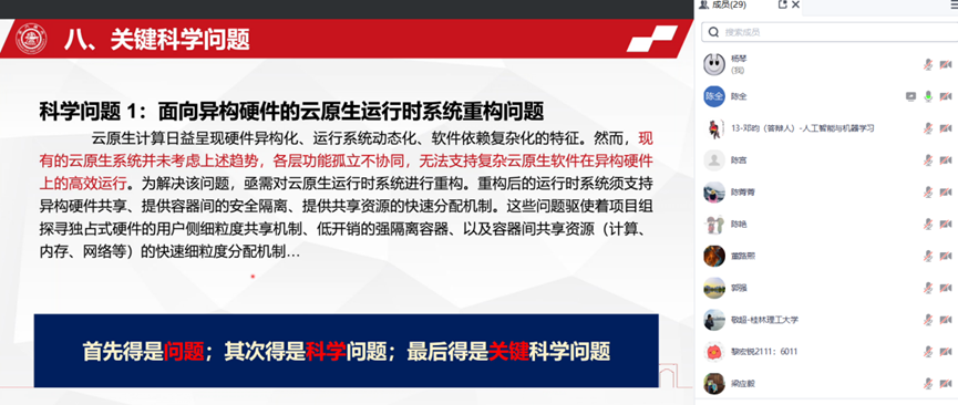 2025年12月23日,学院特邀上海交通大学计算机学院陈全教授通过线上形式进行国家基金申报书撰写技巧辅导。学院科研骨干参加了此次活动,讲座由学院副院长敬超主持。 讲座伊始,敬超对专家的到来表示热烈欢迎,他强调此次辅导旨在搭建学习交流平台,帮助科研人员破解申报难题,提高项目申报成功率。讲座中,陈全结合自身丰富的评审经验与申报指导经历,从项目选题和申报书撰写等方面进行了系统讲解,重点拆解了摘要、立项依据、研究内容、研究方法、技术路线、创新点、预期成果等模块的撰写要点,指出摘要需精准概括项目核心内容,立项依据要充分论证研究的必要性,研究内容、目标、研究方法及技术路线需逻辑清晰、方法科学。 互动环节,现场师生围绕项目选题方向、申报书撰写细节、评审标准等问题与专家进行了深入交流,专家逐一耐心解答,给出了具体的指导意见。参会人员纷纷表示,讲座内容详实、实用性强,不仅系统梳理了基金撰写的技巧要点,还解决了实际申报中遇到的困惑,为后续申报工作奠定了坚实基础。 (一审:杨琴;二审:敬超;三审:白凌婷)