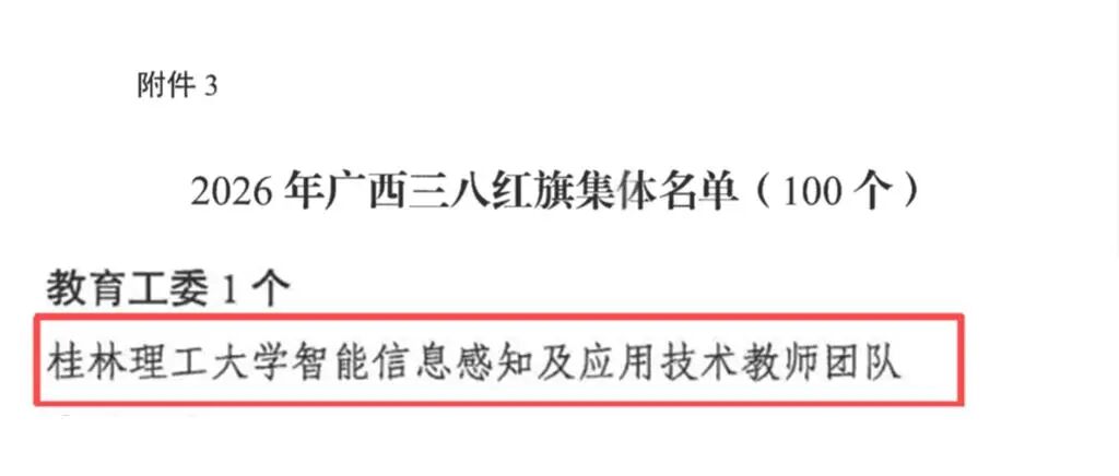 我校智能信息感知及应用技术教师团队荣获2026年广西三八红旗集体 (一审:董路熙;二审:谢晓兰;三审:白凌婷)