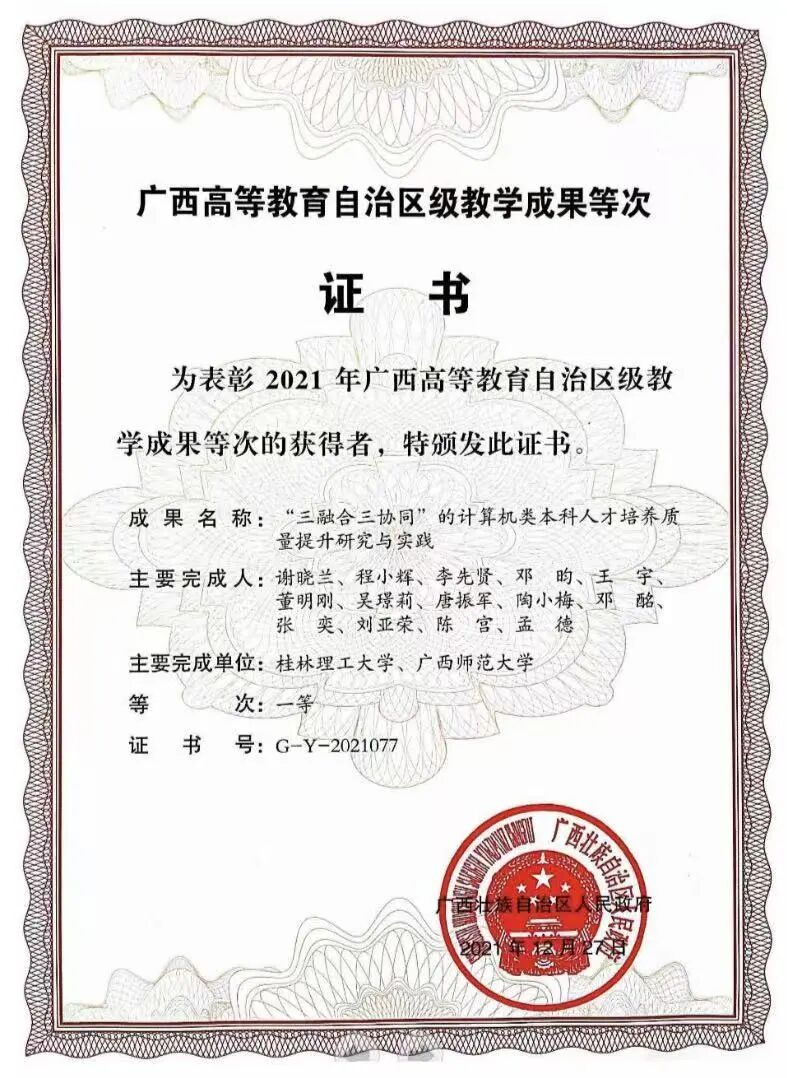 (《“三融合三协同”的计算机类本科人才培养质量提升研究与实践》获得广西高等教育自治区级教学成果奖一等奖) “科研不能关起门来做,我们的研究方向,始终紧扣国家战略和广西的发展需求。”在团队的科研实验室,谢晓兰教授指着屏幕上的“端-边-云”协同计算模型介绍道。这项成果正是团队斩获2025年广西科技进步奖二等奖的核心内容,而这样的科研突破,在团队中并非个例。 团队聚焦智能信息感知、云计算、生物信息等前沿领域,近五年承担国家自然科学基金项目4项、省部级科研项目20项,累计科研经费超1200万元,先后荣获广西科学技术奖二等奖3项、第50届日内瓦国际发明展金奖1项,多项成果达到国际先进水平。谈及日内瓦国际发明展金奖的斩获,团队科研骨干李水旺老师回忆道:“为了完善面向复杂制造环境的端边云协同计算关键技术,团队里的女老师们和男同事一起加班加点、反复试验,没有一个人喊苦喊累。” 这份执着与坚守,让团队的科研成果不断突破:研发的无人机目标跟踪、医学AI辅助诊断、智慧农业物联网等技术广泛应用于农业、医疗、制造等多个领域,累计创造经济效益超200亿元。而团队的科研实力,也体现在人才的硬核素养上,谢晓兰教授入选全球前2%顶尖科学家“终身科学影响力”榜单,成为广西人工智能领域的标杆人物,一支老中青结合、学科交叉的科研梯队已然形成,女性教师在项目攻关、技术研发中始终占据核心位置。