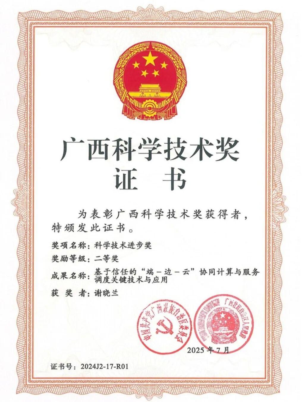 (《基于信任的“端一边一云”协同计算与服务调度关键技术与应用》获广西科学技术奖二等奖) “把论文写在八桂大地上,让科技成果造福百姓,这是我们团队全体成员的共同心声。”这是采访中,团队成员说得最多的一句话。从实验室到田间地头,从企业车间到抗疫一线,团队的脚步遍布广西灌阳、龙胜等20余个县区,用智能科技为乡村振兴、产业升级、民生保障贡献巾帼力量。 针对广西人工林种植土壤监测难、管理效率低的问题,团队深入田间调研,研发出人工林土壤生态数字孪生平台,该平台的应用实现了年降本3600万元、增效8000万元,让当地农户实实在在享受到了科技红利。“以前靠经验种树林,现在靠科技,不仅省了人力,收成还更好了。”当地种植户的话语,是对团队成果最好的肯定。在工业领域,团队开发的钢带表面缺陷智能检测系统服务广西30余家企业,助力传统制造产业实现智能化转型,推动广西工业高质量发展。 疫情期间,团队更是闻令而动,紧急开发“超算驱动的药物筛选与病原追踪系统”,为广西的科学防控贡献了“硬核”科技力量。此外,团队还在智慧旅游、文化遗产AI修复等领域持续发力,用智能技术守护广西的自然与文化瑰宝;同时开展科普公益活动超百场,惠及群众超1.2万人次,让人工智能知识走进基层、走进校园,点亮更多人的科技梦想。