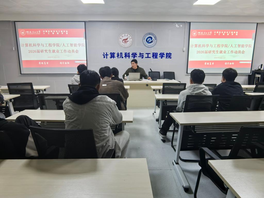为切实做好学院研究生就业指导服务工作,帮助同学们明晰就业形势、找准自身求职定位、破解求职迷茫困惑、夯实核心求职底气。3月23日下午,学院采用线上线下相结合的形式,在02525教室召开2026届研究生就业工作动员会。学院党委副书记郝文佳、研究生辅导员蔡志勇出席会议,会议覆盖学院80%的毕业研究生。 会上,郝文佳结合当前宏观就业市场态势、计算机行业发展实际,深入剖析了研究生面临的就业压力与潜在机遇,引导同学们树立正确理性的就业观,主动打破思想桎梏、走出就业迷茫,摒弃被动观望心态,抢抓就业先机。同时,他对毕业研究生提出三点建议:一是牢牢把握春季招聘黄金窗口期,主动参与各类企业专场宣讲会、校园双选会,密切关注地方人才引进政策、事业单位招考等官方平台信息,抢抓各类优质就业机遇;二是善用学校、学院搭建的资源平台,拓宽就业信息渠道与求职选择范围;三是提前打磨优化个人简历,主动对接导师、辅导员,获取专业求职指导与就业推荐,全方位提升自身求职核心竞争力。 此次就业动员大会的成功举办,不仅为2026届毕业研究生提供了清晰的就业指引,更有效纾解了同学们的求职困惑,帮助同学们进一步明确了阶段性求职目标与后续努力方向。下一步,学院将持续聚焦毕业生就业需求,不断完善就业指导服务体系,通过开展专场招聘、“一生一策”精准帮扶等多元化举措,为学院研究生毕业生高质量就业提供全方位支持。