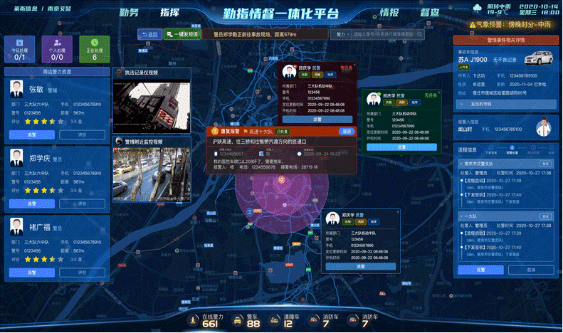 “云计算与大数据处理”科研团队近年来围绕着云计算中容器云的安全架构、信任管理、服务调度等关键技术与方法、复杂生物大数据的预测、挖掘、智能分析及决策等方面的关键科学问题,开展一系列科学研究,如:①面向容器云的资源关键技术。主要研究可信容器云、容器云服务及应用。包括容器云下的信任模型、各种数据密集型行业的云服务和新应用开发等;②复杂生物大数据处理与应用。研究生物大数据病理关联及预测,对复杂的生物大数据进行检索以及使用、挖掘、智能分析及决策等。新增国家自然科学基金项目4项;广西科技开发项目(重点研发项目、重大专项、广西自然科学基金、人才专项)新增获得6项。发表SCI/EI论文33篇。授权发明专利授权20件。此外,还有6项成果实现成果转化。与国内众多企业合作,代表性成果如下: 一、多维度智慧街面巡防系统研发与应用示范 多维度智慧街面巡防系统研发与应用示范是桂林理工大学计算机科学与工程学院、润建股份有限公司联合申请的一个广西重点研发计划项目。该项目研发一套智慧街面巡防系统,从视频监控、单兵巡逻、联勤联防、无人机精准巡防等多个维度,结合可视化地理信息系统与新一代移动终端,发布精确巡逻盘查任务,实施精准式街面巡逻防控工作,对街面重点人车特征、人流密度变化、群体行为特征等进行无感采集、远端识别、超前预警,提高街面见警率、管事率、盘查率、抓获率,提升群众安全感和满意度。