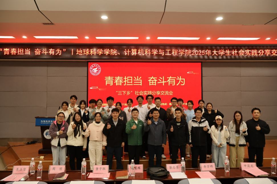 为系统总结大学生社会实践工作,深化活动影响,推动引领示范,提升育人实效,2025年11月25日晚,计算机科学与工程学院、地球科学学院在01501报告厅联合举办“青春担当,奋斗有为”2025年大学生社会实践分享交流会。计算机科学与工程学院团委副书记蔡志勇,地球科学学院团委副书记王昱琛、辅导员周密,材料科学与工程学院辅导员董子胜,各学院的兼职辅导员与社会实践团队成员共同参会。 交流会在蔡志勇老师的致辞中拉开序幕。他充分肯定了同学们在暑期社会实践中付出的辛勤努力与取得的丰硕成果,勉励青年学子继续将青春热血融入国家发展大局,在服务社会中主动担当、锤炼本领,让青春在实践大舞台上绽放光彩。 随后,九支社会实践团队代表依次上台,围绕乡村振兴、文化传承、边疆建设、科技普及、爱国主义教育等内容分享实践经验。会上,“乡村田野的‘智慧’变革”“民族共耘·文化同心”“壮美岩途行·地质筑安疆”等团队生动讲述了实践过程中的探索与收获。在互动提问环节,与会同学积极交流,现场气氛热烈。 地球科学学院团委副书记王昱琛在总结讲话中充分肯定了各实践团队取得的成果,他指出,2025年“三下乡”社会实践活动组织有序、主题鲜明、成效显著,充分展现了学院学子服务社会、勇于担当的精神风貌,他鼓励更多同学未来积极投身社会实践,在知行合一中增长才干,在奉献社会中实现价值。 此次分享会的成功举办,不仅搭建了高效的实践经验交流平台,更激发了青年学生参与社会实践的热情。下一步,学院团委将持续凝练实践经验,拓展实践平台,聚焦品牌打造、成果转化和典型选树,引导青年在服务社会中增长才干、锤炼品格,以实际行动书写青春担当。