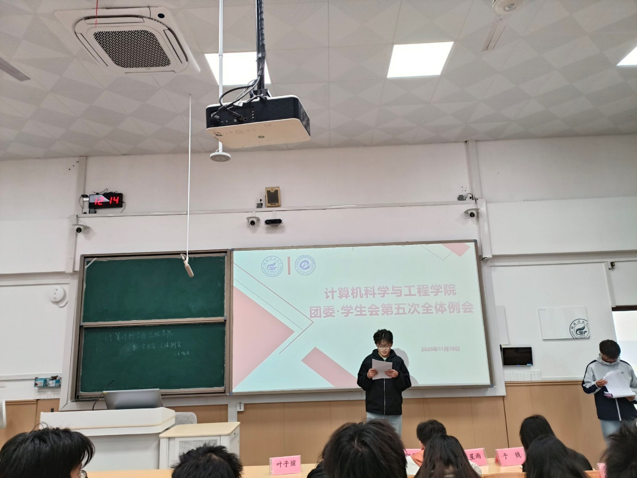 为系统总结校运会工作经验,统筹部署 “三下乡” 社会实践交流、班服设计大赛等近期重点文体活动。11月18日中午,计算机科学与工程学院团委、学生会于04323教室召开第十一周全体例会,学院团委副书记蔡志勇老师以及团委、学生会全体成员参加会议。 会议上各部门对近期工作进行汇报,主席团结合汇报情况部署后续任务,各部门须养成及时回复工作群消息的习惯,进一步强化横向沟通与协同配合,确保“三下乡”经验交流会、班服设计大赛等各项活动在时间、资源、人员上高效衔接,避免出现空档或重叠。 会议提升了团队凝聚力,形成了推动工作的强大合力,学生干部也在会议中进一步强化了责任担当意识,明确协同配合的重要性,为确保各项活动高质量开展奠定了坚实基础,推动了学院团学工作再上新台阶。 会议现场 (一审:蔡志勇;二审:孟德;三审:黎超业)