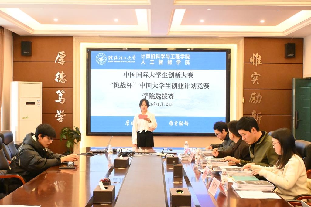 为深入培养大学生的创新意识、创业精神与实践能力,营造积极向上的创新创业氛围,为更高层级赛事选拔培育优秀项目。2026年1月12日,计算机科学与工程学院/人工智能学院在雁山校区02507会议室成功举办“挑战杯”中国大学生创业计划竞赛学院选拔赛。学院党委副书记郝文佳、环境科学与工程学院团委书记孙云龙、网络工程教研室老师李水旺、学院团委书记李会娟、学院团委副书记蔡志勇作为评委出席比赛。 汇报展示环节,12支参赛团队通过PPT路演与答辩,围绕项目社会价值、实践过程、创新意义、团队协作及发展前景等核心内容展开介绍。参赛项目紧密结合专业特色,聚焦行业前沿与社会需求,充分展现了学院学子立足专业、服务社会的责任担当,以及扎实的专业功底和敏锐的创新思维。评委们认真聆听陈述,围绕竞赛核心评审要点对各项目进行全面细致的点评,既充分肯定了参赛项目的亮点与潜力,也针对项目存在的不足,提出了极具针对性的改进建议,为团队后续打磨完善项目、冲刺更高层次赛事提供了宝贵指导。 此次选拔赛不仅为同学们搭建了展示成果、交流互学的创新平台,也进一步营造了“以赛促学、以赛促创”的良好氛围。学院将以此次比赛为契机,持续完善创新创业教育体系,推动优质项目孵化升级,助力为学院创新创业工作高质量发展注入青春动能。 比赛现场 (一审:蔡志勇;二审:李雪;三审:郝文佳)